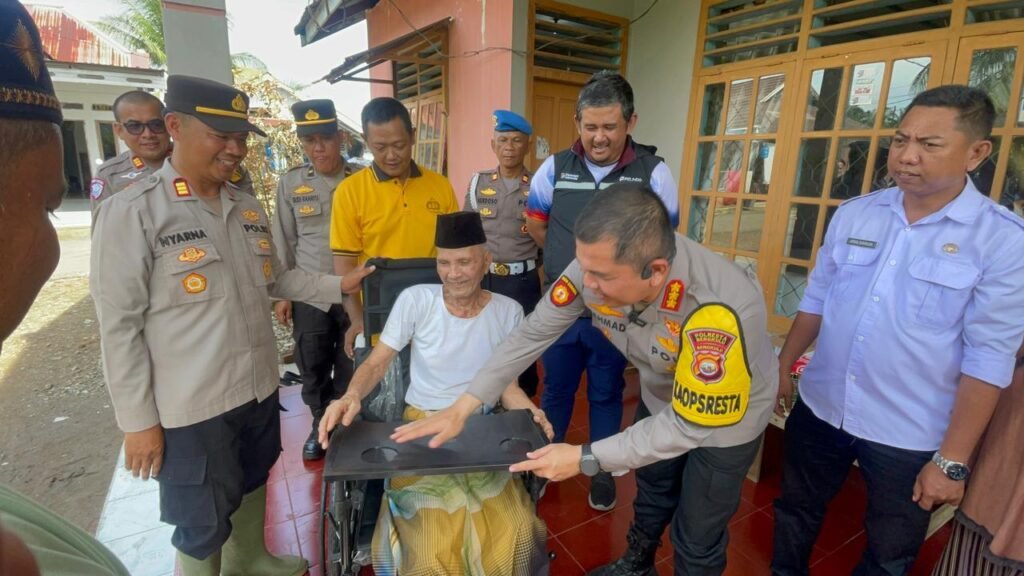 Kota Bengkulu-Kapolresta Bengkulu Kombes Pol Rahmad Hidayat, S.S., M.H., melaksanakan kegiatan pembagian kursi roda kepada masyarakat yang membutuhkan mulai pukul 09.45 WIB s-d selesai, Jumat (27/3/2026). Kegiatan secara simbolik berlangsung di 2 lokasi yaitu kediaman Bpk. Eddy Yusuf warga Jl. Puri Lestari Kel. Kandang dan Ibu Siti Nabiyah Warga Kampung Bahari Kel. Sumber jaya Kota Bengkulu dan selanjutnya 10 penerima manfaat melalui Bhabinkamtibmas masing masing wilayah